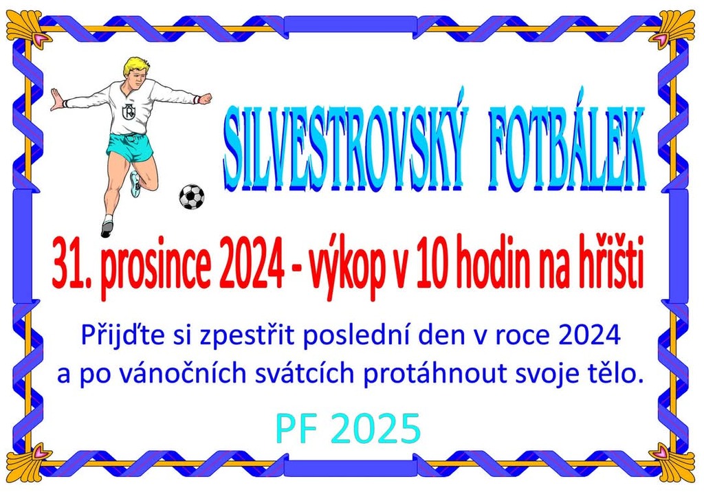 Přijďte aktivně zakončit posední den v roce 2024 nebo zafandit našim silvestrovkým mužstvům.